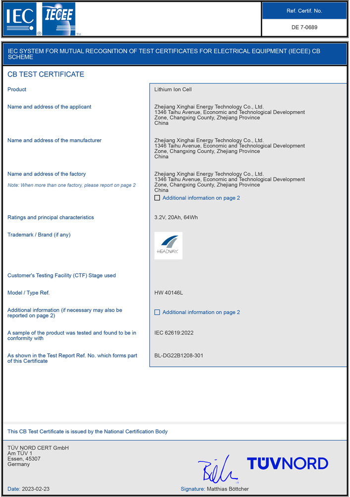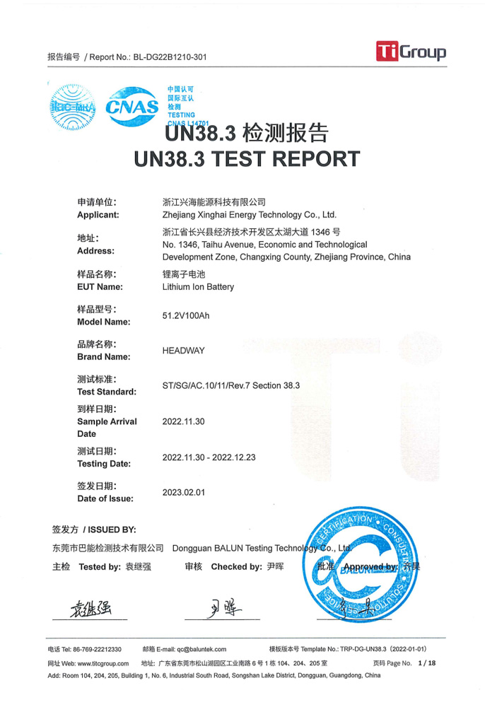 At present, Xinghai Energy has a capacity of 1Gwh watt hours, the key product is largecapacity cylindrical lithium iron phosphate cells. The main applications include AGVs,electric storage machinery such as forklifts, communication energy storage, in (off) gridenergy storage, UPS backup (emergency) power supply, etc. with its excellent perfor-mance, the Headway brand lithium batteries developed by Xinghai Energy have suc-cessfully penetrated into oversea market, mainly exported to Europe, the United States,Japan, South Korea and Southeast Asia, enjoying a high popularity and reputation in oc-cupied markets.